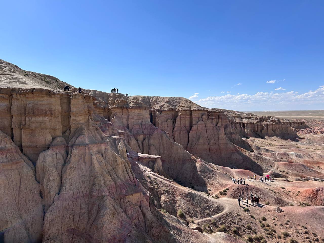 Tsagaan suvarga /White Stupa/, 90 degrees of vertically risen hills, consists of many colors of clay deposits. This is 65 km south west of Ulziit sum, Dundgovi province. Tsagaan suvarga is a big escarpment with 200 m of height and 400 m long.